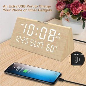 Digital Alarm Clocks for Bedrooms - Wooden Electric Clock with USB Ports, Date