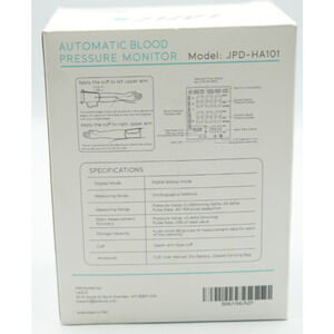 Track your health at home with the Lazle JPD-HA101 Automatic Blood Pressure Monitor. This upper arm monitor features a large LCD backlit display, one-touch operation, and stores 2x99 readings. Includes cuff, carrying bag, and batteries. WHO indicator provides clear results. New and factory sealed in retail box. Outer box shows minor shelf wear only.