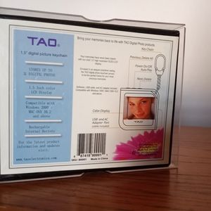 Bring your memories back to life with TAO digital photo Keychain. Stores up to 31 digital photos, 1.5 in color LCD display Keychain, compatible with windows 200/Mac Osx 10.2 and above, rechargeable internal battery.📷