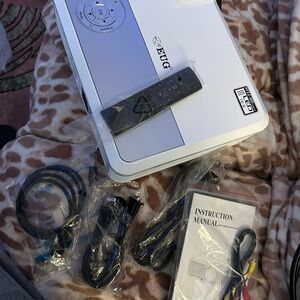 High-quality digital LED projector. Sleek white design. Ideal for home or office use.