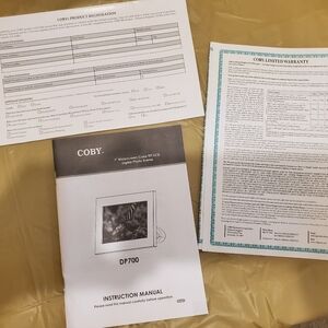 Coby DP700 7" Widescreen Digital Picture Frame, designed to bring your favorite photos to life in stunning clarity. The sleek black frame features an LED display with its generous 7-inch screen, the DP700 is perfect for showcasing your memories in any room, and it even offers practical features like an alarm, calendar, and clock.