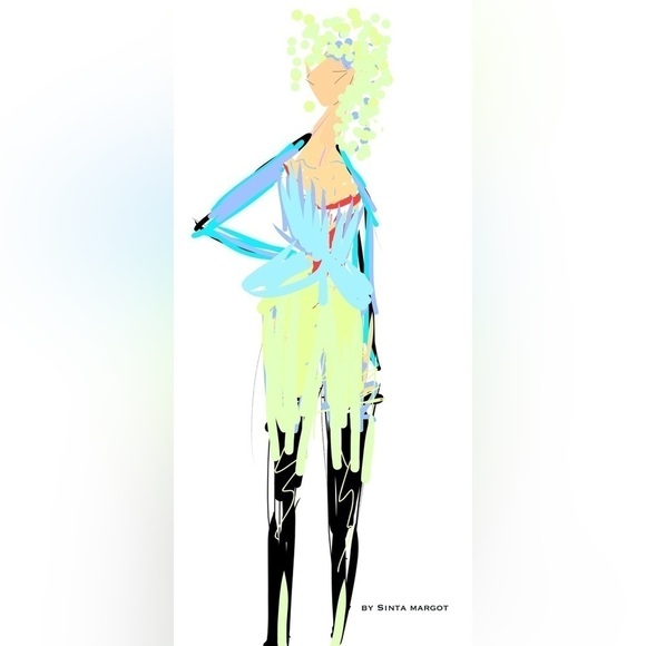 Digital art by me semi abstract figure colorful fashion like sketch NWT