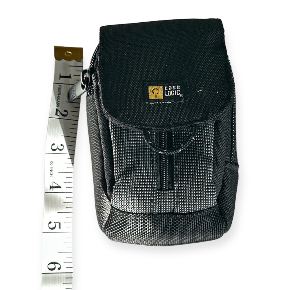 Small digital camera case. Velcro closure over zip closure. Small zip pouch in the front.