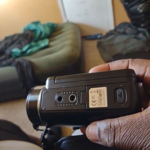 it's brand new out the box from scratches no marks come with the charger cord it also comes with a microphone accessory that you can hook up to your camera also has a memory card already in it it comes with it
