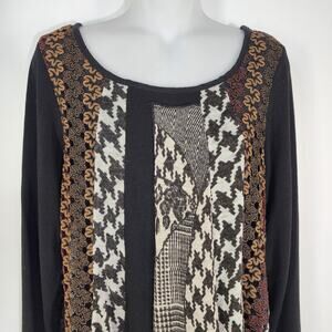 Dikalady Tunic Top Womens Small Patchwork Geometric Asymmetrical Black Lined Art
