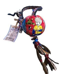 New with tags Diker Turkish Pottery Orb Ball with Braided String Folk Art