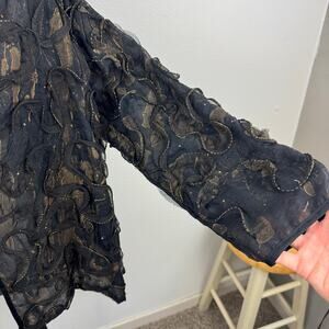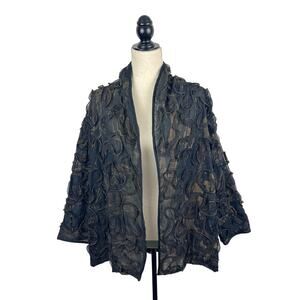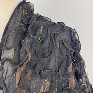Airy & lightweight nylon, "swirled" black fabric with bronze stitching, open front, one size.