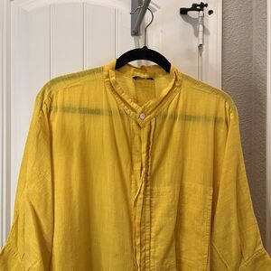 Dilemma Organic Cotton Yellow Oversized Boxy Lagenlook Button Up Top Size 2X/3X