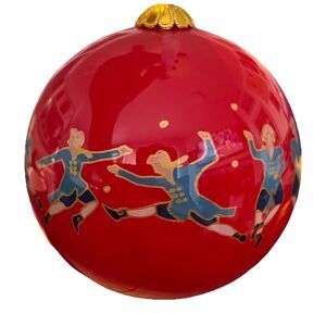 * Dillards exclusive hand-painted glass ornament with vibrant red finish and detailed figures
