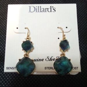 Dillard's - Genuine Shell, Teal, Sterling Silver Post, Sensitive Skin