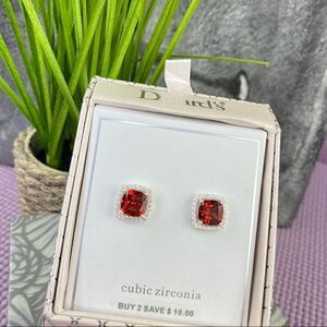 Dillards Red Cubic Zirconia Stud Earrings NWT