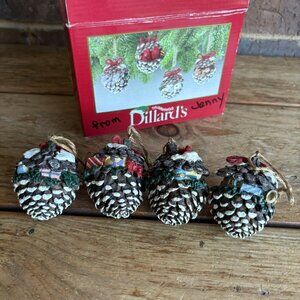 Dillard’s Trimmings Set Of 4 Animals In Pinecone Ornaments Wood Christmas