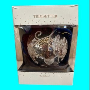 Dillard's Trimsetter Christmas Tree Ornament Glass Silver, Gold, Brown 3.5"