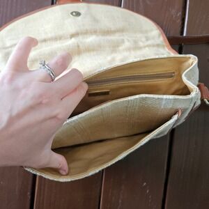 Dillards Vintage Cream Tweed & Leather Crossbody Shoulder Bag Beach Neutral