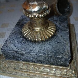 Dilly MFG Co Vintage gilded metal and marble pillar candleholders vintage