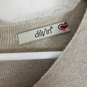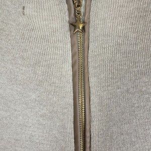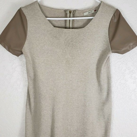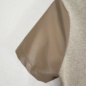 Dilvin Womens Knit Top Full Zip Back Faux Leather Short Sleeve Medium Beige