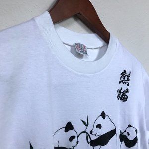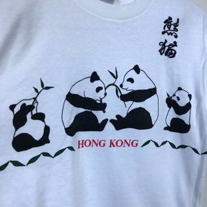 Dim Sum Shirts White Graphic Panda Print Hong Kong Short Sleeve T-Shirt, Size Large