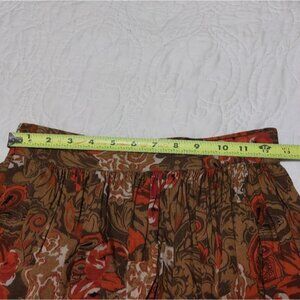 Dimanche brown & red floral midi skirt. Older skirt but in great condition still. Hand-sewn hem years ago by me probably, can't remember. No care tag.