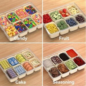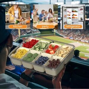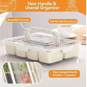 Dimber Snackle Box, Divided Serving Tray with Lid and Handle, Adding Cutlery Organizer, 8 Fruit Forks, 2 Spoons, Snackle Box Container for Sports Events, Candy, Fruits, Snacks