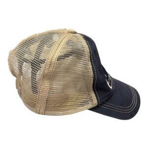 Stylish Dimco Apparel trucker hat featuring an embroidered **“N.C. Cherokee Nation”** patch on the front. Designed with a navy cotton front and tan mesh back for breathability. Adjustable snapback closure ensures a comfortable fit. Perfect for casual wear or as a collectible souvenir-style cap.