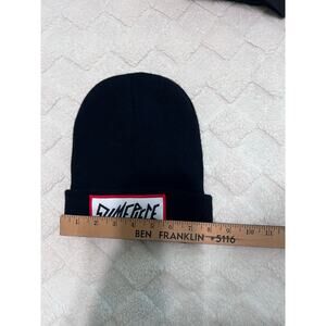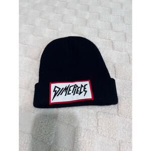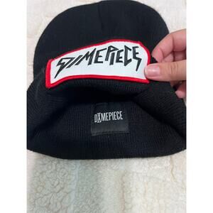 This Dimepiece beanie is in excellent preowned condition. No notable flaws. It is black with a red and white patch design. Super comfy. One size fits most. Approximate flat lay measurements are provided in the pictures.