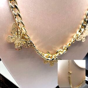 Dimensional Butterfly Gemstone Necklace l Gold Plate l 3” Extension l New