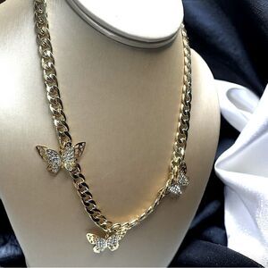 Gorgeous Dimensional Butterfly Rhinestone Necklace l Gold Plate l