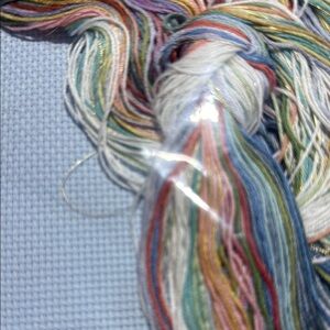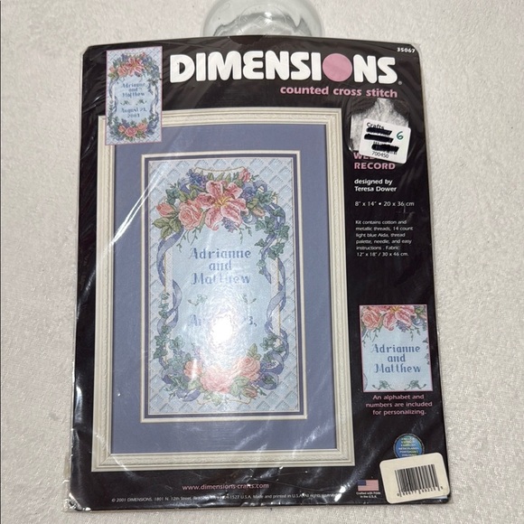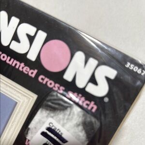 Dimensions counted cross stitch kit featuring a floral design with pink and blue colors. Vintage item that is new in original packaging.