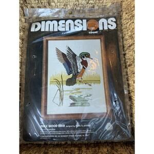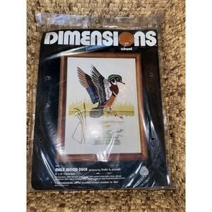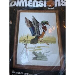 This vintage Dimensions crewel embroidery kit features a male wood duck, numbered 1171, and was designed by Linda K Powell in 1980. The kit includes everything necessary for hand embroidery enthusiasts to create a beautiful piece to add to their collection.