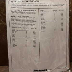 Brand New/Factory Sealed. Vintage 1997. Dimensions Gold Collection THE SNOW LEOPARD #3835 Counted Cross Stitch Kit design by June Payne Hart. Kit contains everything needed to complete this gorgeous work of art. Frame is NOT included. (2423)