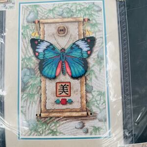 Dimensions Needlepoint Blue Butterfly on Scroll Asian Kit 10" X 16" Embroidery