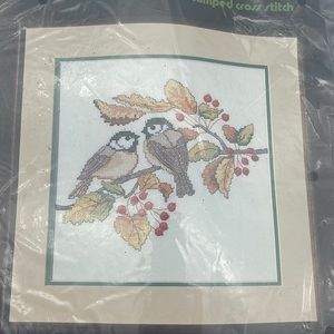 Dimensions Stamped Cross Stitch Kit Chickadee Pair Birds 12 x 12 Vintage NEW