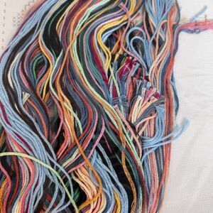 Kit contains cotton embroidery thread, design printed on white sailcloth, needle and easy instructions