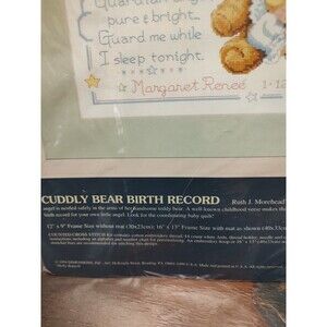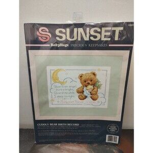Dimensions Sunset Counted Cross Stitch Kit Cuddly Bear Birth Record 13591 Vtg