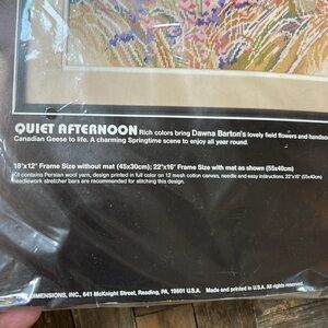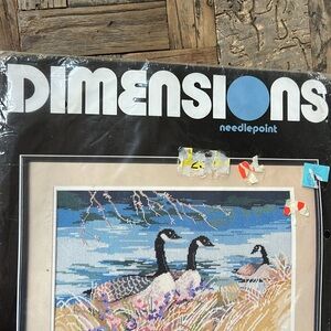 Dimensions Vintage Needlepoint Kit NWT. “Quiet Afternoon”: field flowers and Canadian geese in a springtime scene. Vintage 1987