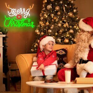 Merry Christmas Neon Sign uses bright lights and bright colors to create a romantic and cheerful space in your room, cleverly combining the words "Merry Christmas" and deer antlers to add to the festive atmosphere of Christmas