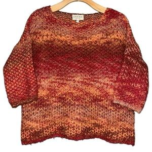 Dimoda Women’s Size S Red Orange Ombré Space Dye 3/4 Sleeve Pullover Sweater. Made in Italy.