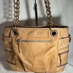 Dimoni Tan Shoulder Bag with Gold Accents - Made in Spain