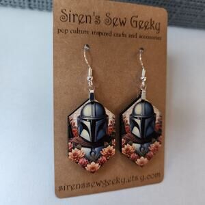 Pretty Mandalorian earrings, perfect for any Star Wars fan! Would make a great gift. Brand new, lightweight and comfortable, with hypoallergenic hardware. Great for everyday wear or a trip to Galaxy's Edge at Disney.
