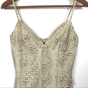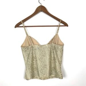 Dina Bar-el Spaghetti Strap Deep V Cream and Brown Snake Print Crop Tank Top Shirt
