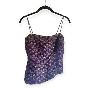 Dina Bar-el Vintage Y2K Asymmetrical Bustier Corset Style Silk Blend Cami Tank Top in Oriental Dragon Pattern, Purple & Gold Color size 4, fits like Small/X-Small