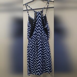 Dina Be Chevron Striped Dress Women's Size S Blue And White
