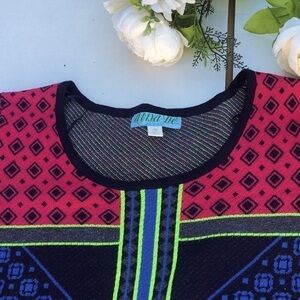Dina Be Geometrical Sweater Dress Size Medium. In new condition, never wore it. This dress has a colorful geometrical design and print in blue, pink, green and gray. 3/4 sleeves.
