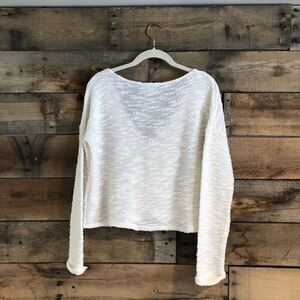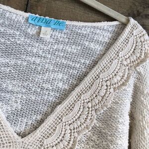 Dina Be cropped cream v-neck laced trimmed sweater - S - 🙂3/$15