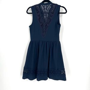 Dina Be Navy Black Dress Size XS sleeveless lace overlay Button Down