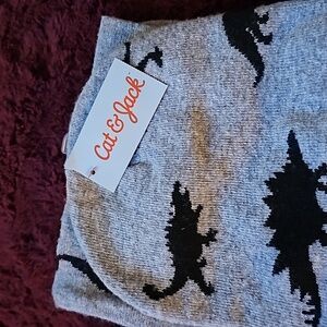 Cat & Jack stocking cap and matching scarf. Grey & black. NWT. Cute dinosaurs, kids love.