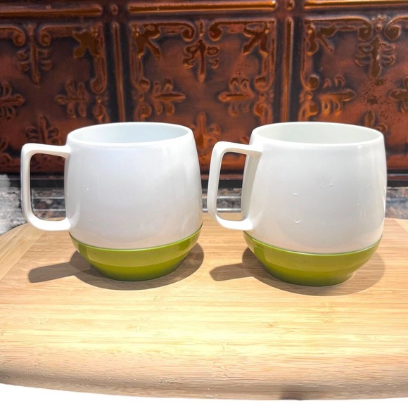 Dinex Thermos Green White Insulated Coffee Mug Cup set of 2 King Seely Camping RV Vintage
