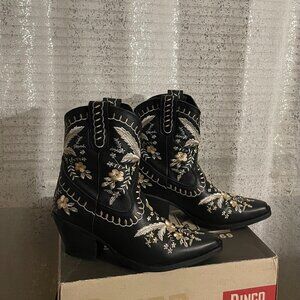 Soft wearable leather, pretty embroidered flowers and lacing detail