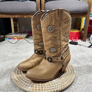 Dingo Addie Women’s Harness Boots Mid-Calf Rhinestone Western Rodeo Cowgirl Tan