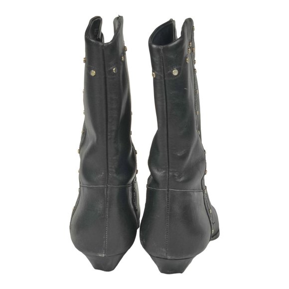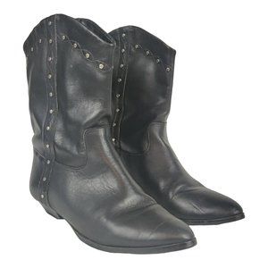 Dingo Black Leather Studded Ankle Boots Pointed Toe Low Heel Western Slip-On
